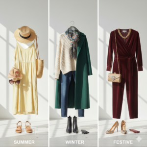 Stay updated with the latest seasonal fashion trends, outfit ideas, and styling tips for summer, winter, festive seasons, and changing weather.
